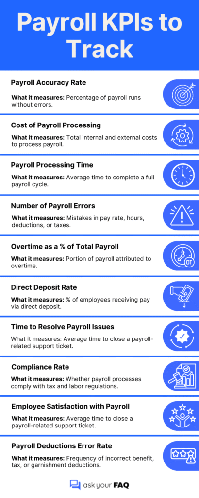 While payroll accuracy is essential, tracking how well the system performs over time is equally important. Measuring payroll metrics shows whether the process is efficient, timely, and cost-effective.
